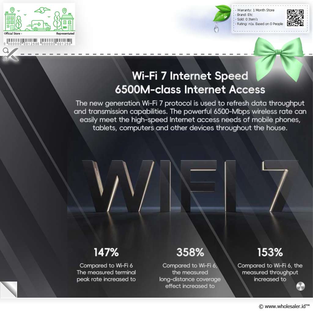 | WiFi 7 Kecepatan Tinggi Router ini mengusung standar terbaru WiFi 7 yang memberikan peningkatan signifikan dalam kecepatan dan latensi. Teknologi WiFi 7 menghadirkan bandwidth lebih besar dan koneksi lebih responsif dengan kecepatan 6500 Mbps yang tentunya sangat lebih cepat dibandingkan dengan WiFi 6. |