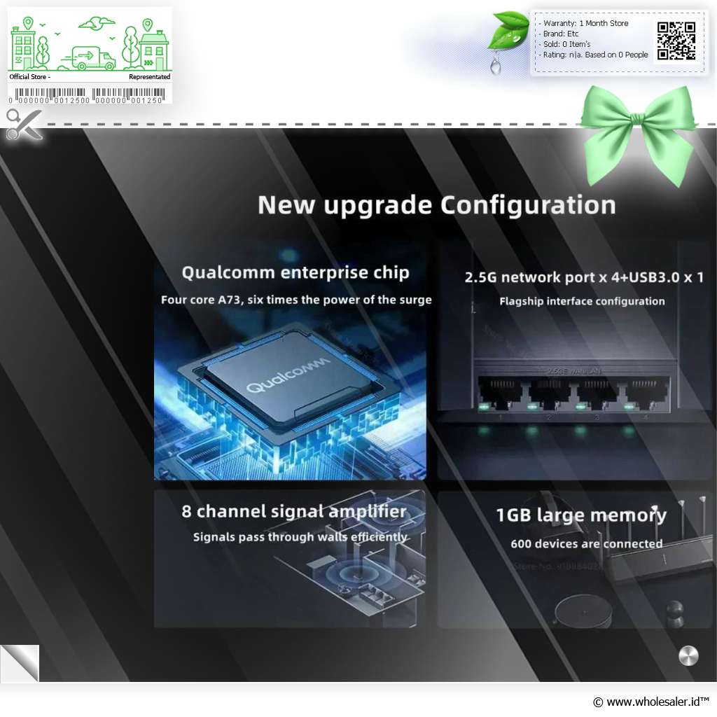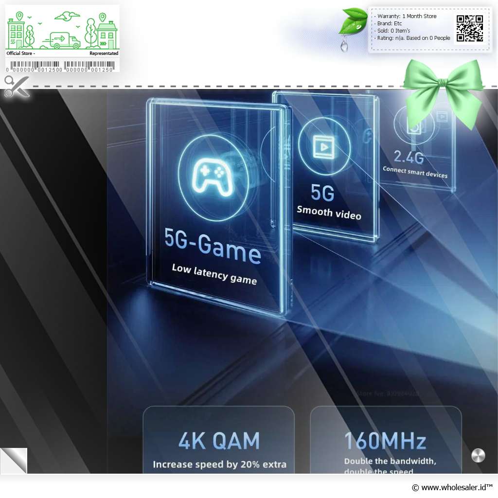 | Frekuensi Sinyal | : | 2.4G Wi-Fi4 x 4 (Theoretical maximum speed can reach 1147.1 Mbps) 5G Wi-Fi4 x 4 (Theoretical maximum speed can reach 5764.8 Mbps) |