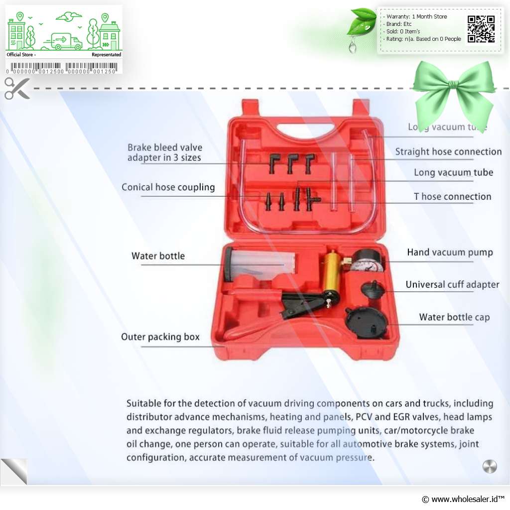 | Alat Pompa Multifungsi Selain berfungsi sebagai alat bleeding minyak rem, alat pompa ini juga dapat digunakan sebagai tester tekanan vakum untuk berbagai sistem kendaraan seperti bahan bakar, pendingin, atau katup. Multifungsi dan praktis, menjadikannya alat wajib bagi pemilik kendaraan maupun bengkel profesional. |