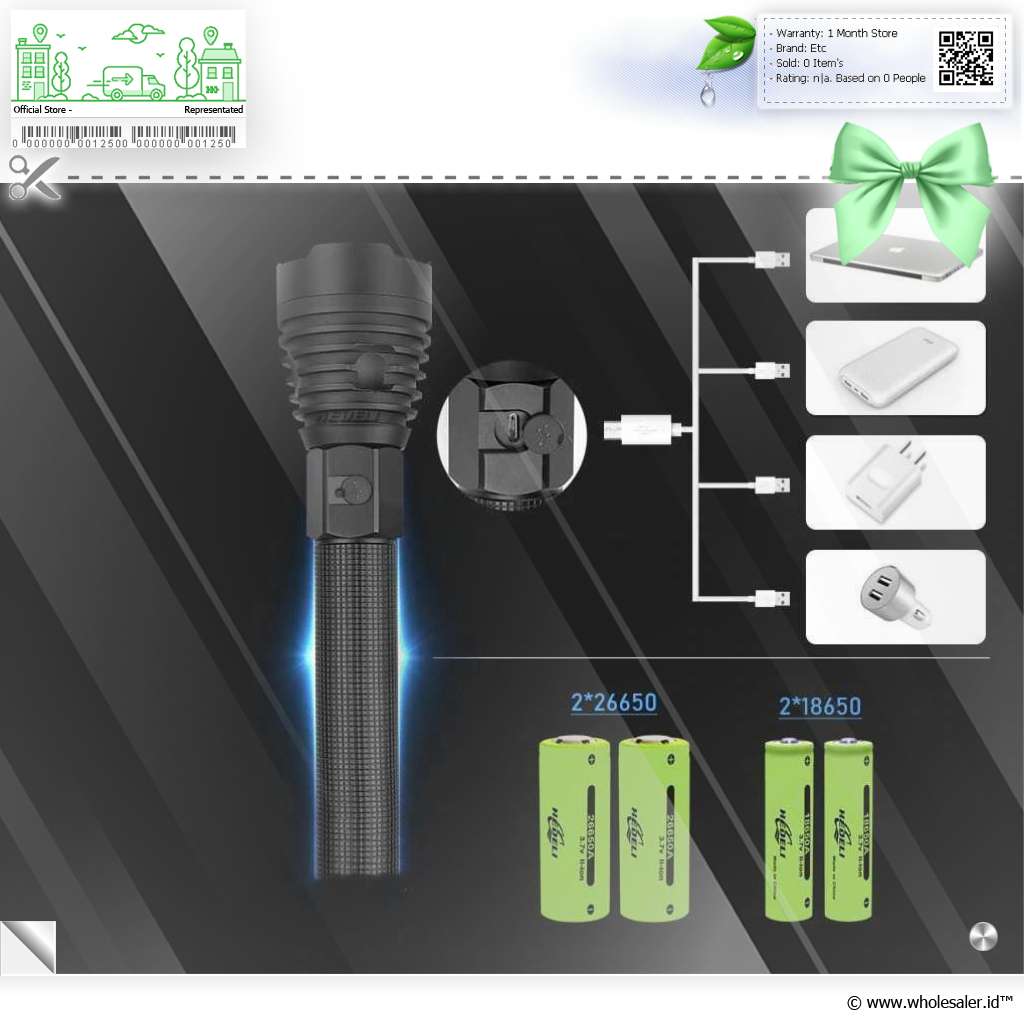 Baterai Rechargeable dengan USB Senter ini dapat dinyalan dengan dua buah baterai 18650 atau 2 buah baterai 26650, baterai tersebut dapat Anda isi ulang melalui USB, menjadikannya sangat praktis dan ramah lingkungan. |