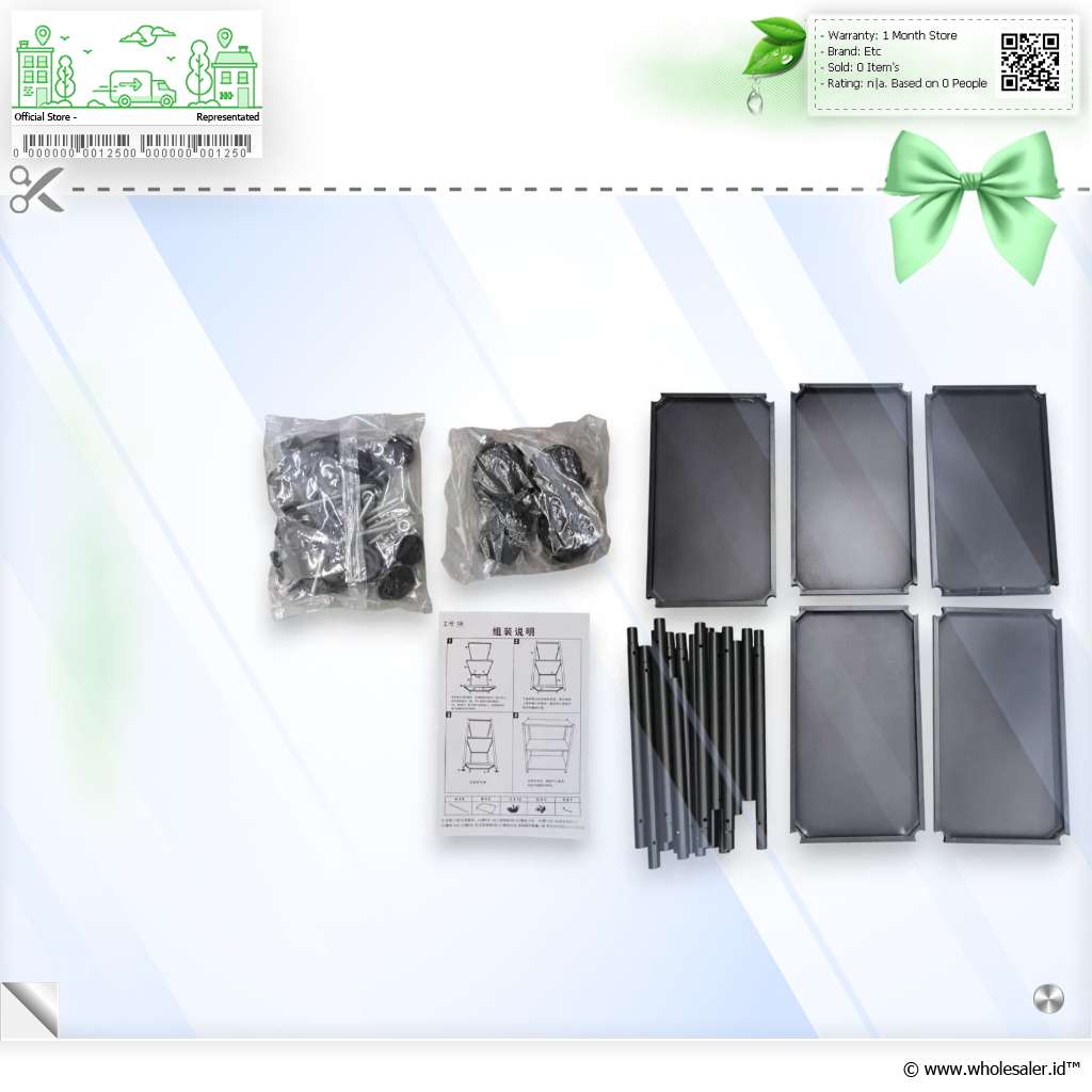 | Dimensi | : |  Masing-Masing Rak 49.4 x 28 x 2.3 cm Diameter Tiang 25 mm Diameter Roda 39 mm Keseluruhan Tinggi Sekitar 1.75 M Panjang Sekitar 50.2 cm Lebar 29.1 cm  |