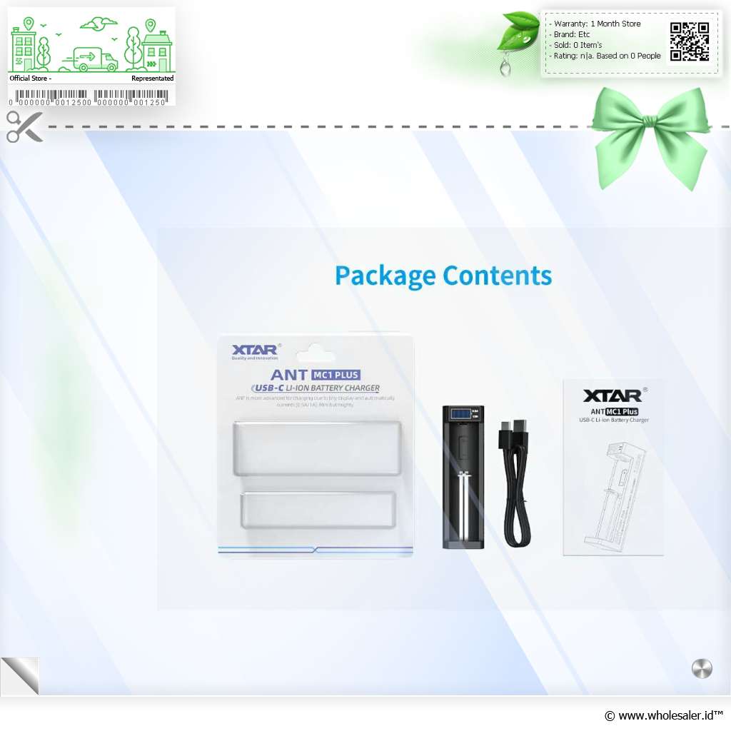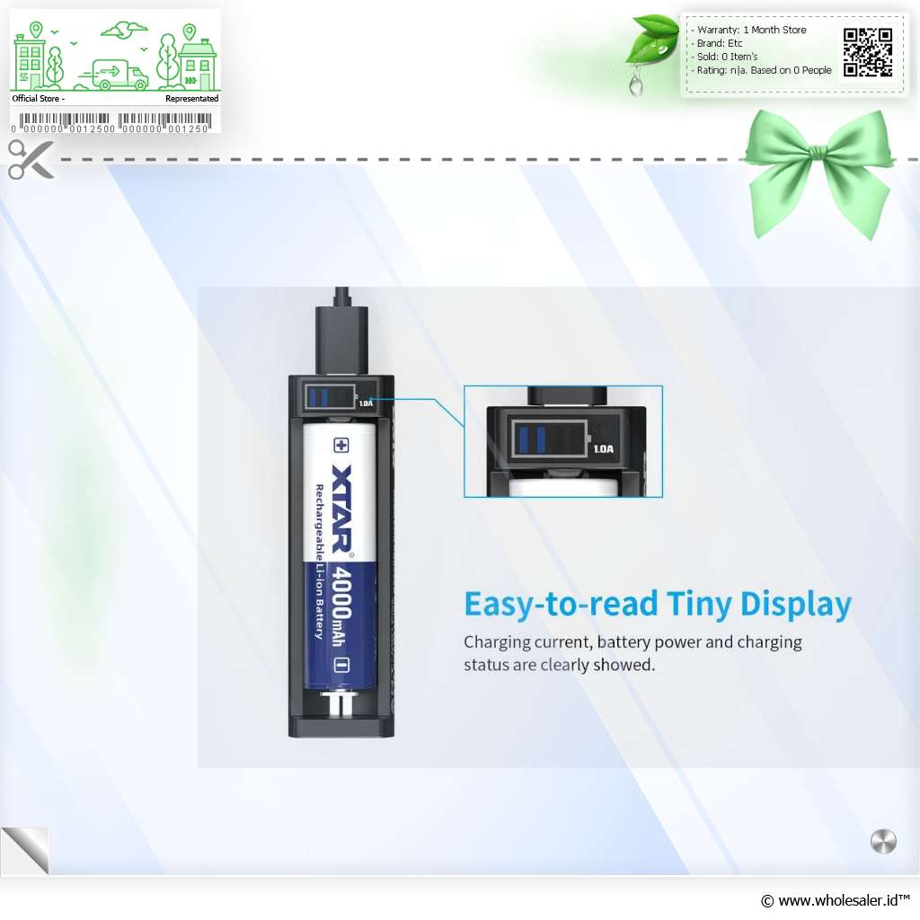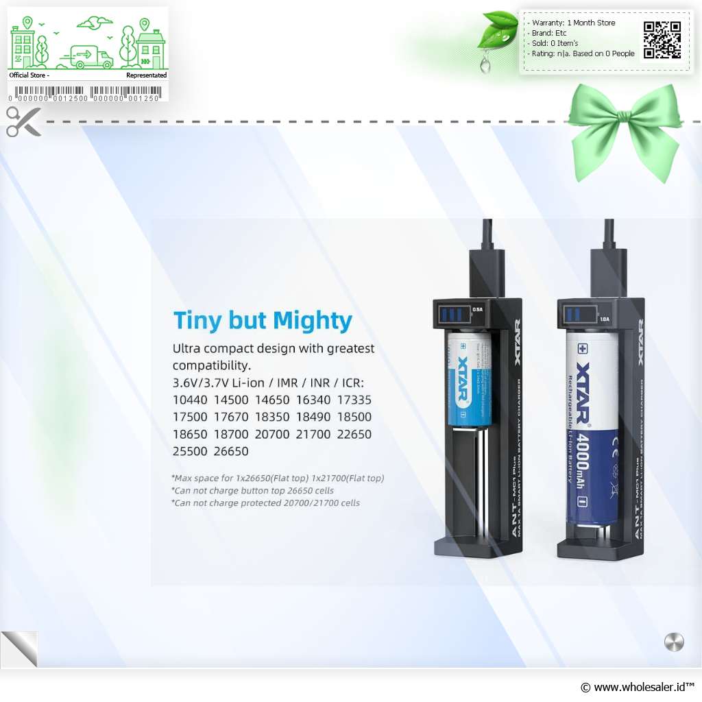 - 1 x XTAR Charger Baterai 1 Slot 14500 18650 18650 Li-Ion 3.7V LCD Type C - ANT MC1 Plus