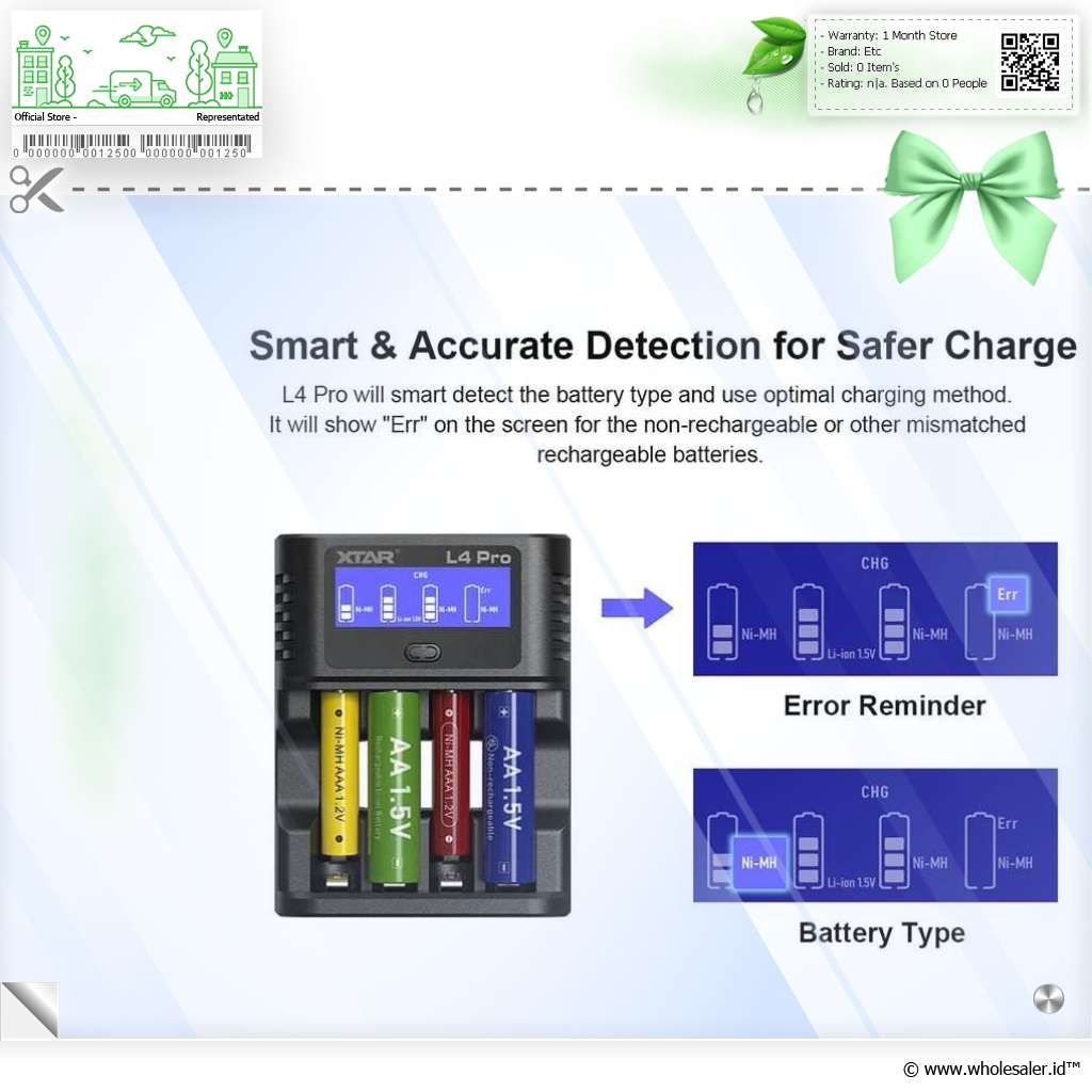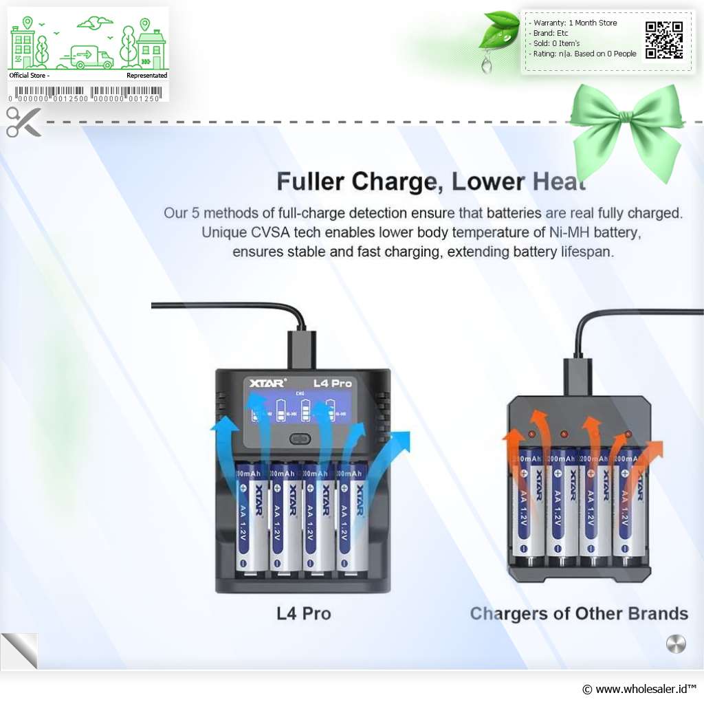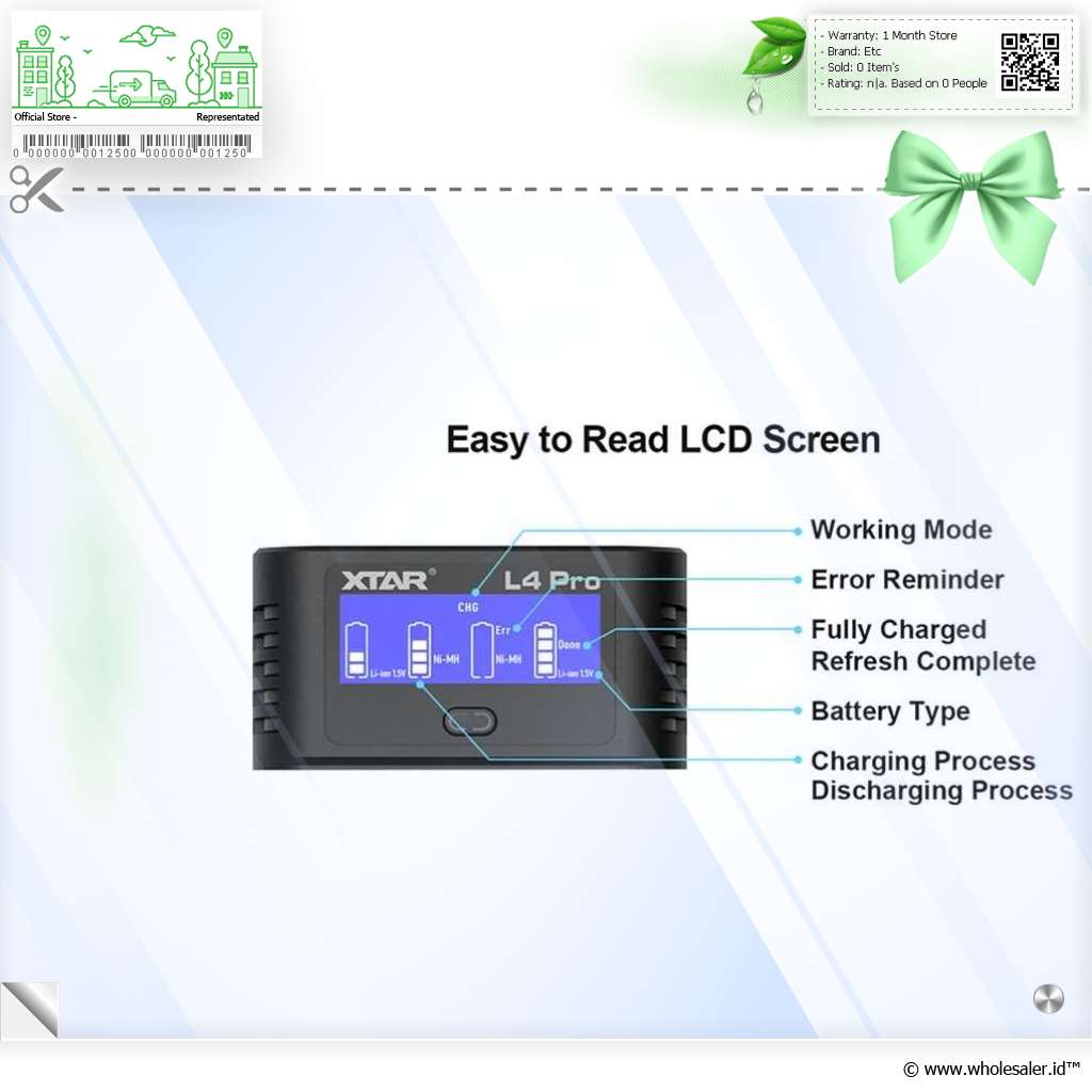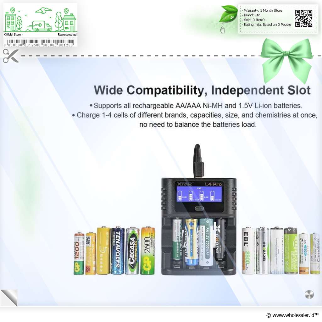 - 1 x XTAR Charger Baterai 4 Slot AA AAA 1.5V Li-Ion 1.2V Ni-MH LCD Type C - L4 PRO KT