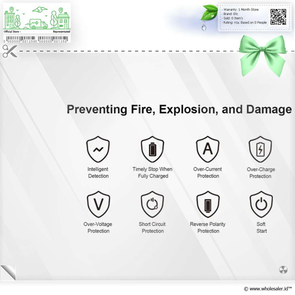 | Keamanan Internal dan Eksternal Tidak hanya sistem pengisian canggih, charger baterai ini juga dibekali proteksi arus berlebih, arus pendek, polaritas terbalik, pengisian berlebih, tegangan berlebih, temperatur berlebih, dan lainnya. Tak ketinggalan material dan desainnya yang mampu mendukung disipasi panas serta mampu menahan risiko kelistrikan. |