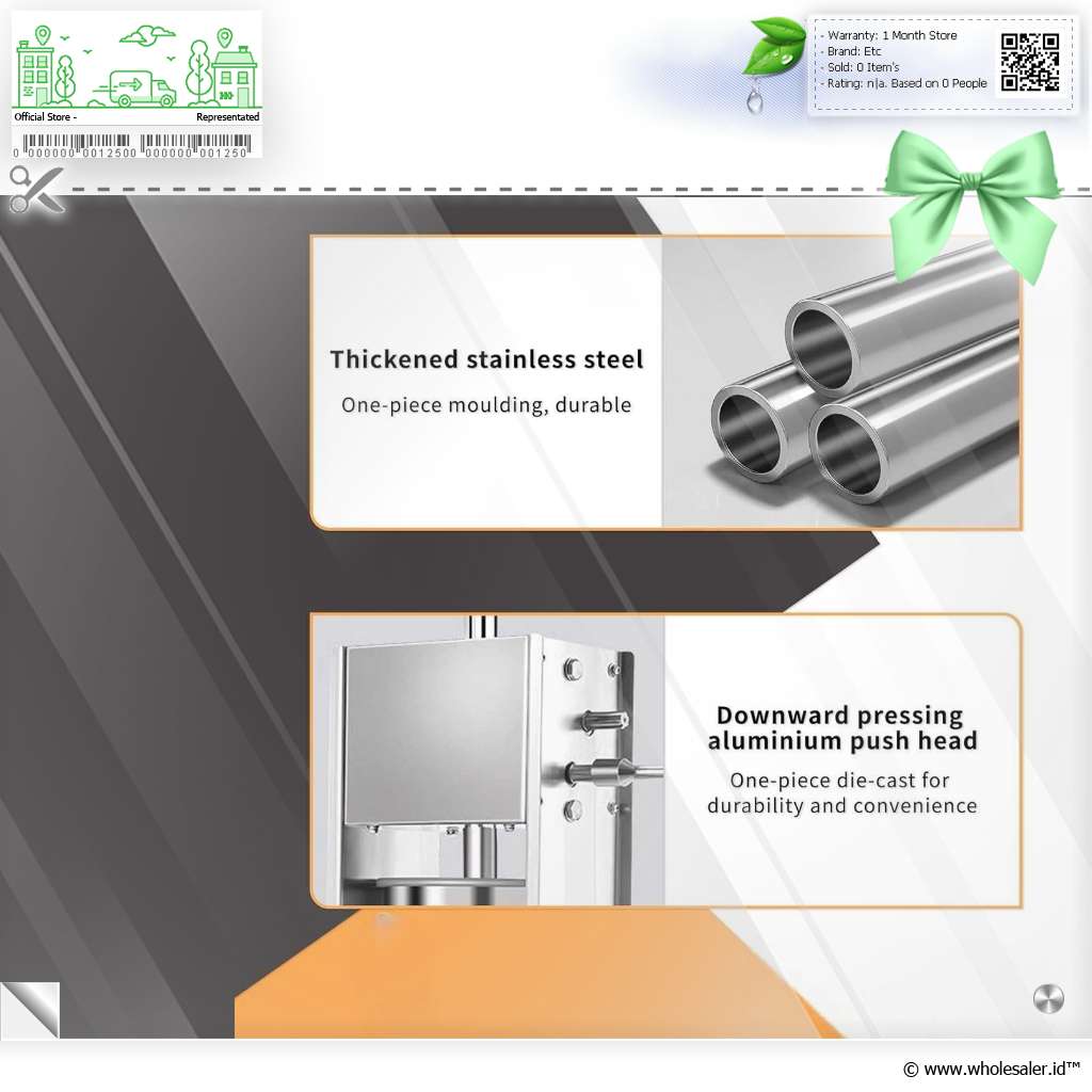 Material | : | Alat Pembuat Sosis Stainless Steel Tabung Plastik dan Stainless Steel Gagang Tuas Kayu |