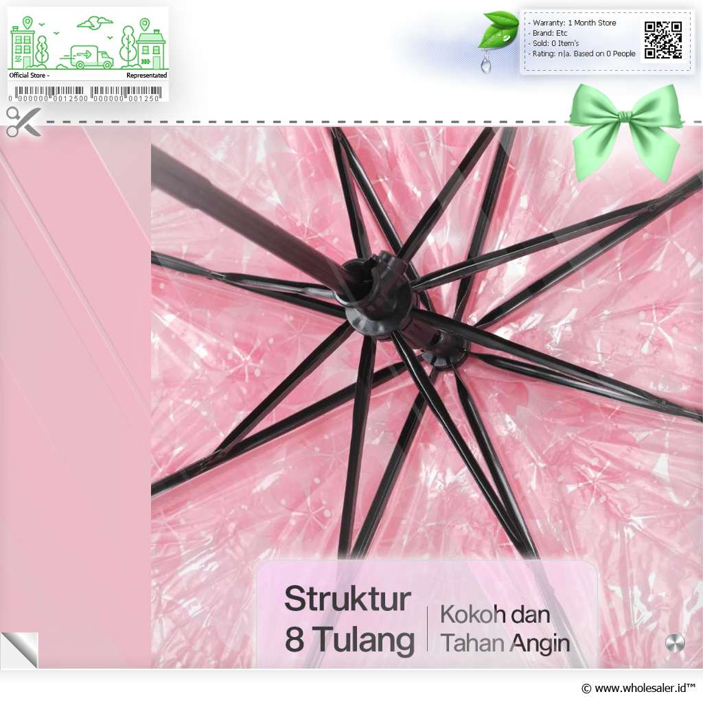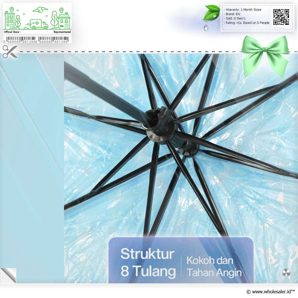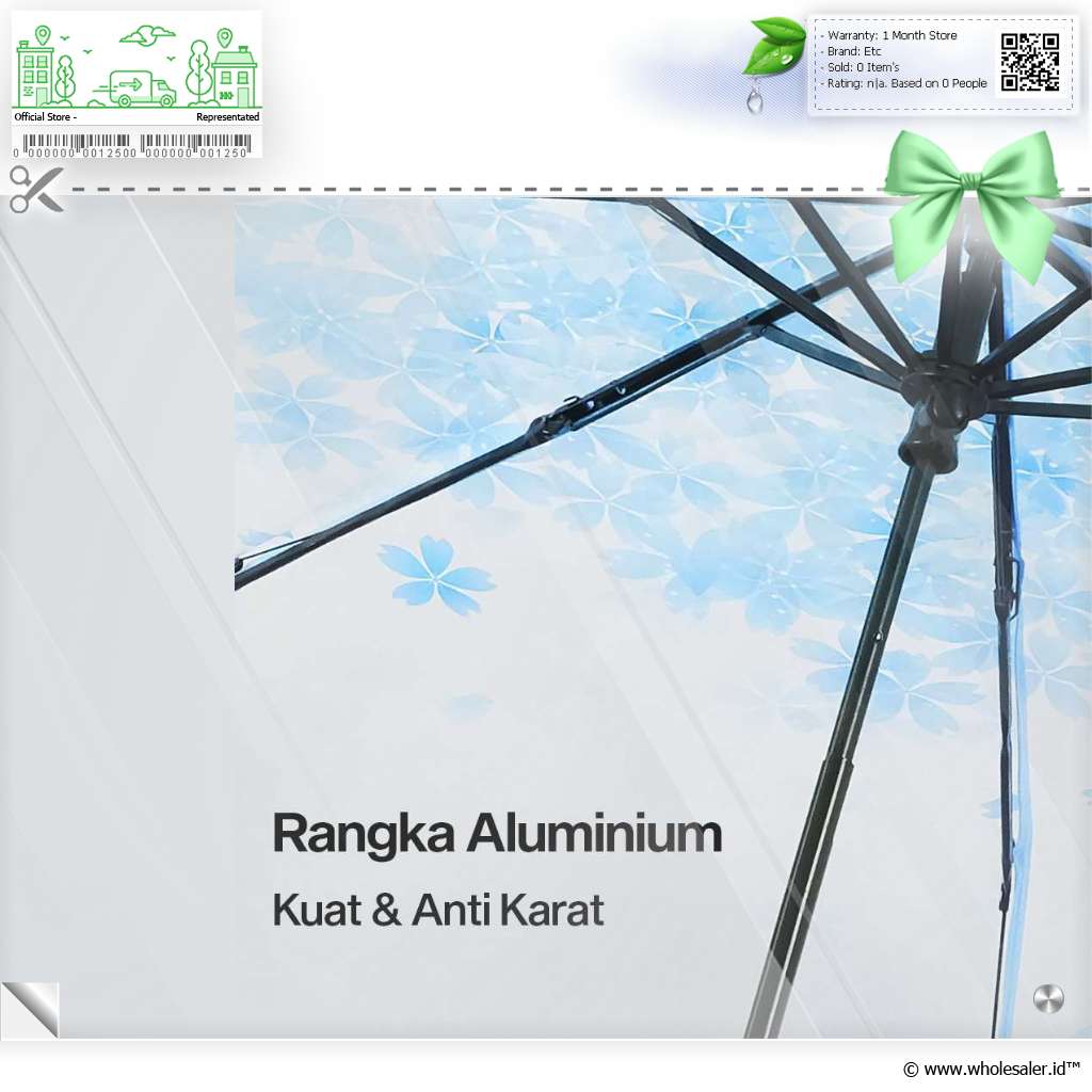 Rangka Kokoh Rangka besi dengan 8 bone memastikan payung lipat kokoh dan dapat menahan embusan angin yang kuat. Dapat digunakan pada cuaca ekstrem sekalipun. |
