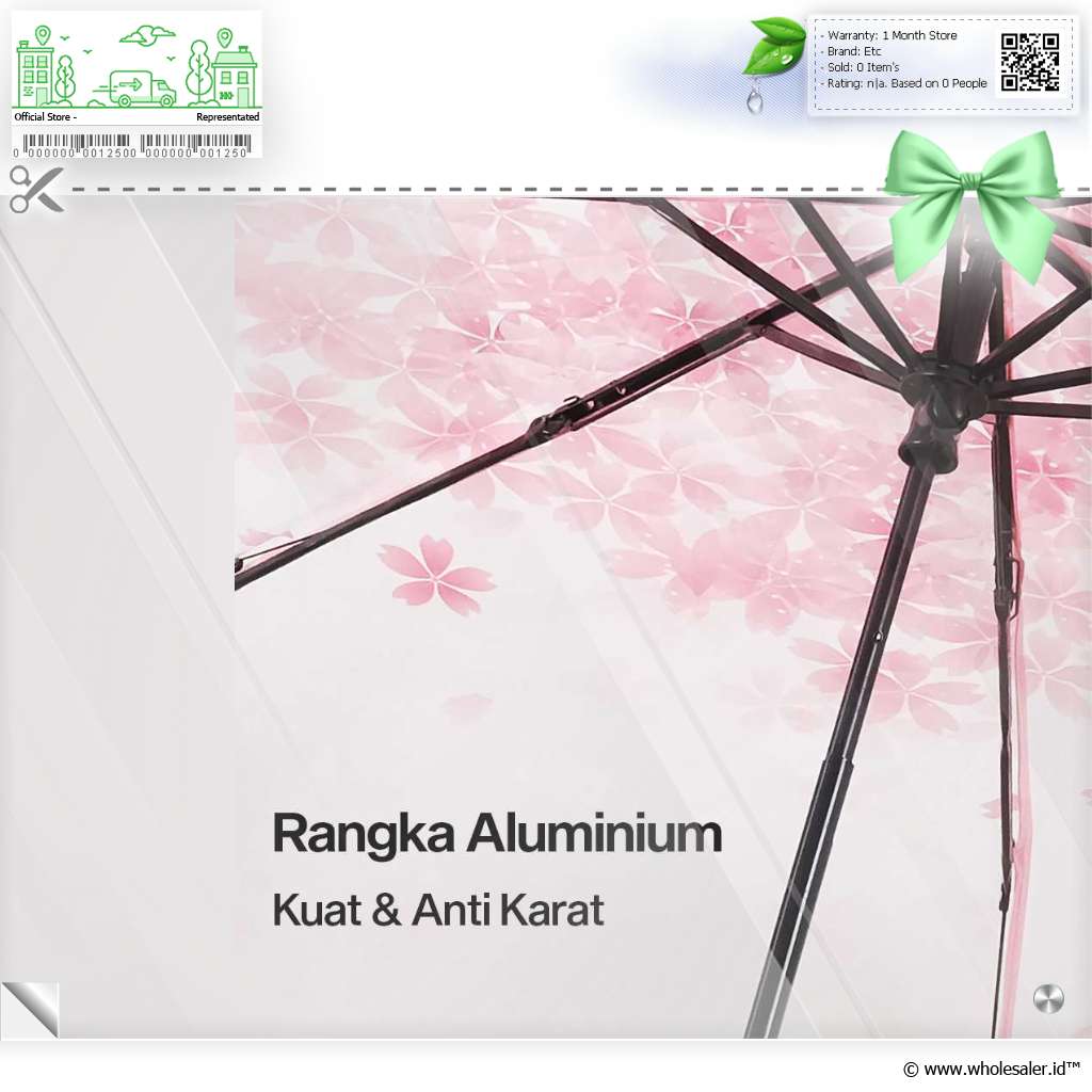 Informasi Produk Yesello Payung Lipat Manual Motif Cherry Blossom 8 Bone 95cm - E023