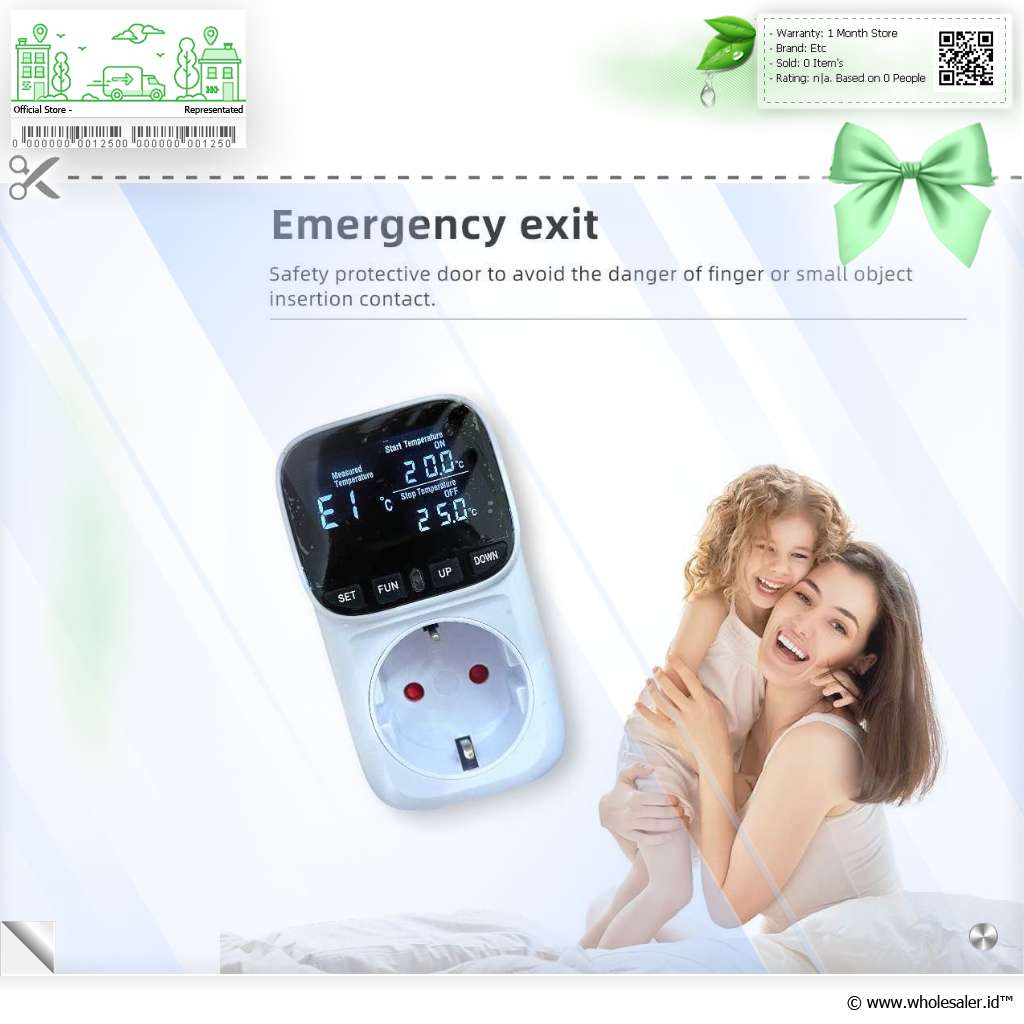 2 Fungsi dalam 1 Produk Menyalurkan daya listrik sekaligus mendeteksi suhu ruang bisa Anda lakukan dengan stop kontak termometer ini. Selain soket EU, stop kontak juga dibekali sensor suhu di bagian sampingnya. Besaran suhu ruang dapat dideteksi mulai dari -40C hingga 120C |
