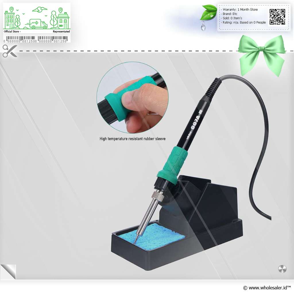 Desain Ergonomis Kenyamanan dan kemanan Anda menjadi tujuan utama. Pegangan solder dilengkapi dengan karet anti panas sehingga Anda dapat menggunakannya dengan aman dan nyaman. Tak perlu bingung harus meletakkan solder di mana ketika sedang digunakan karena dilengkapi dengan holder yang kokoh dan tahan panas.