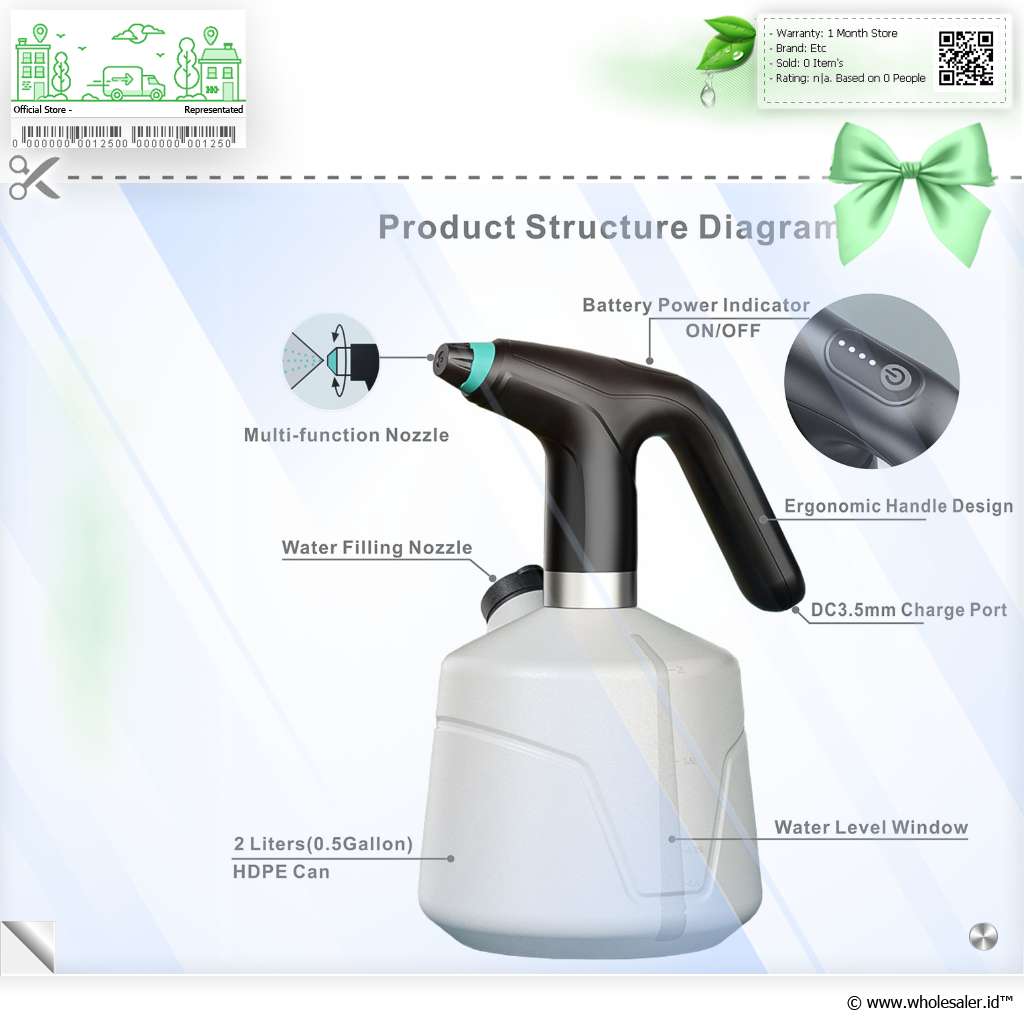 Sprayer elektrik 2 L dengan baterai isi ulang, nozzle adjustable, desain ergonomis, dan fungsi multifungsi. Praktis untuk berkebun, menyiram, pupuk cair, disinfektan, hingga pembersih rumah.