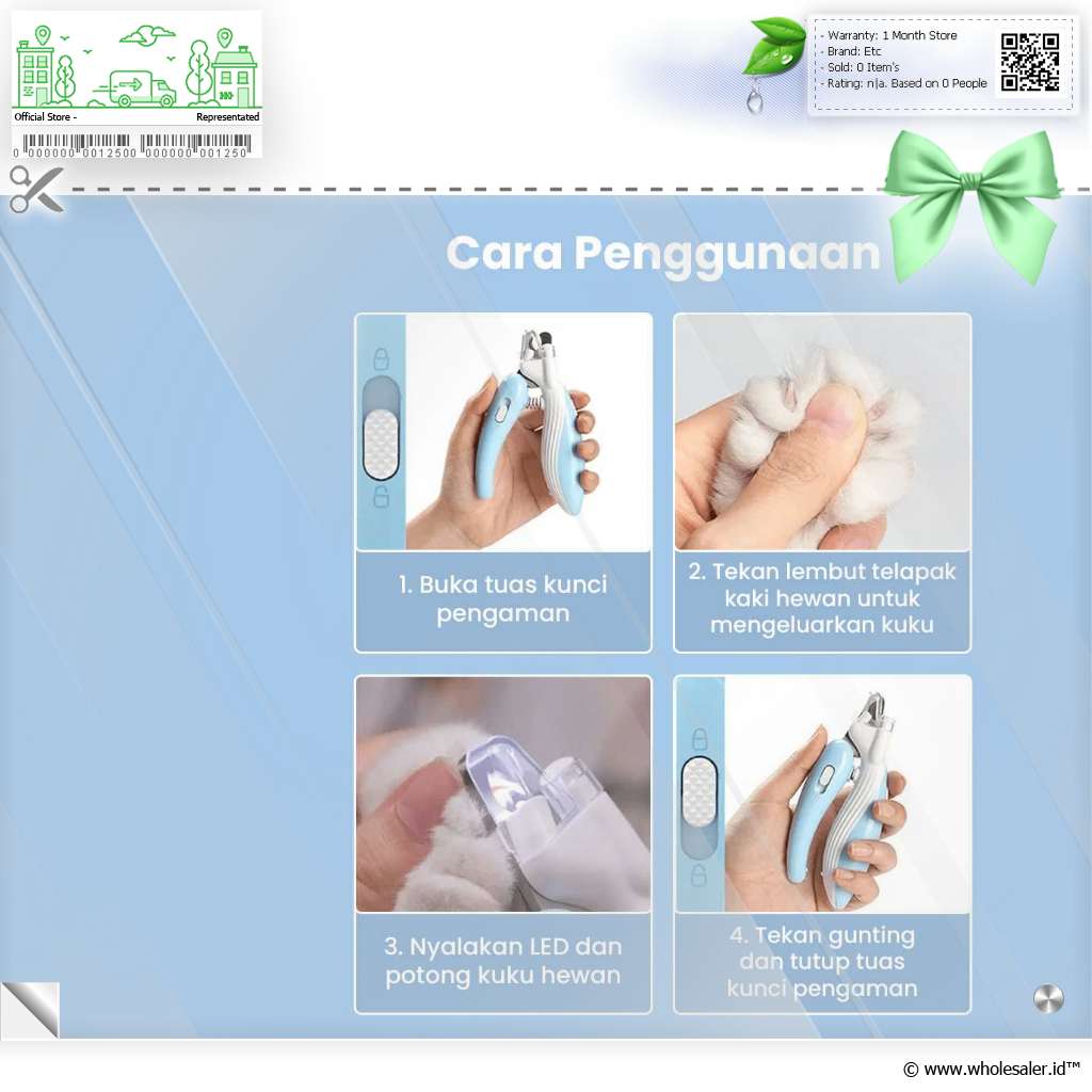 | Potong Kuku Lebih Aman Memotong kuku anjing dan kucing lebih aman berkat kampu LED pada ujung gunting kuku. Lampu ini menerangi area kuku untuk cegah luka atau potongan yang terlalu dalam. |