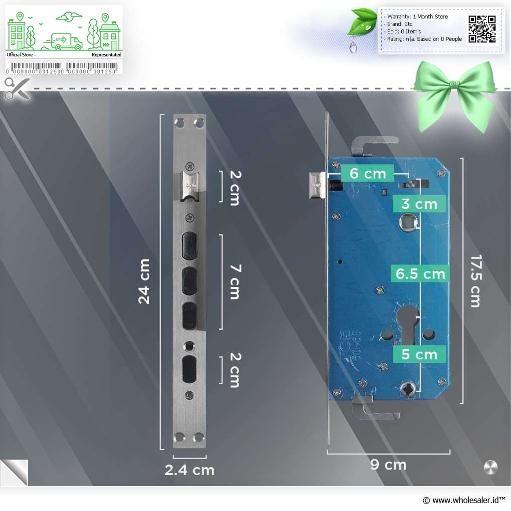 Dimensi | : | Unit Indoor 7.5 x 2.6 x 36.7 cm Unit Outdoor 7.5 x 2.6 x 36.7 cm Mortise 2.4 x 9 x 24 cm Rekomendasi Tebal Pintu 35 - 50 mm |