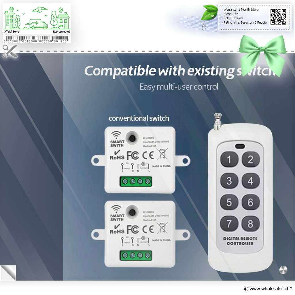 Informasi Produk YULO Wireless Relay Switch Remote Control 433 MHz EV1527 220V 10A - YL-33