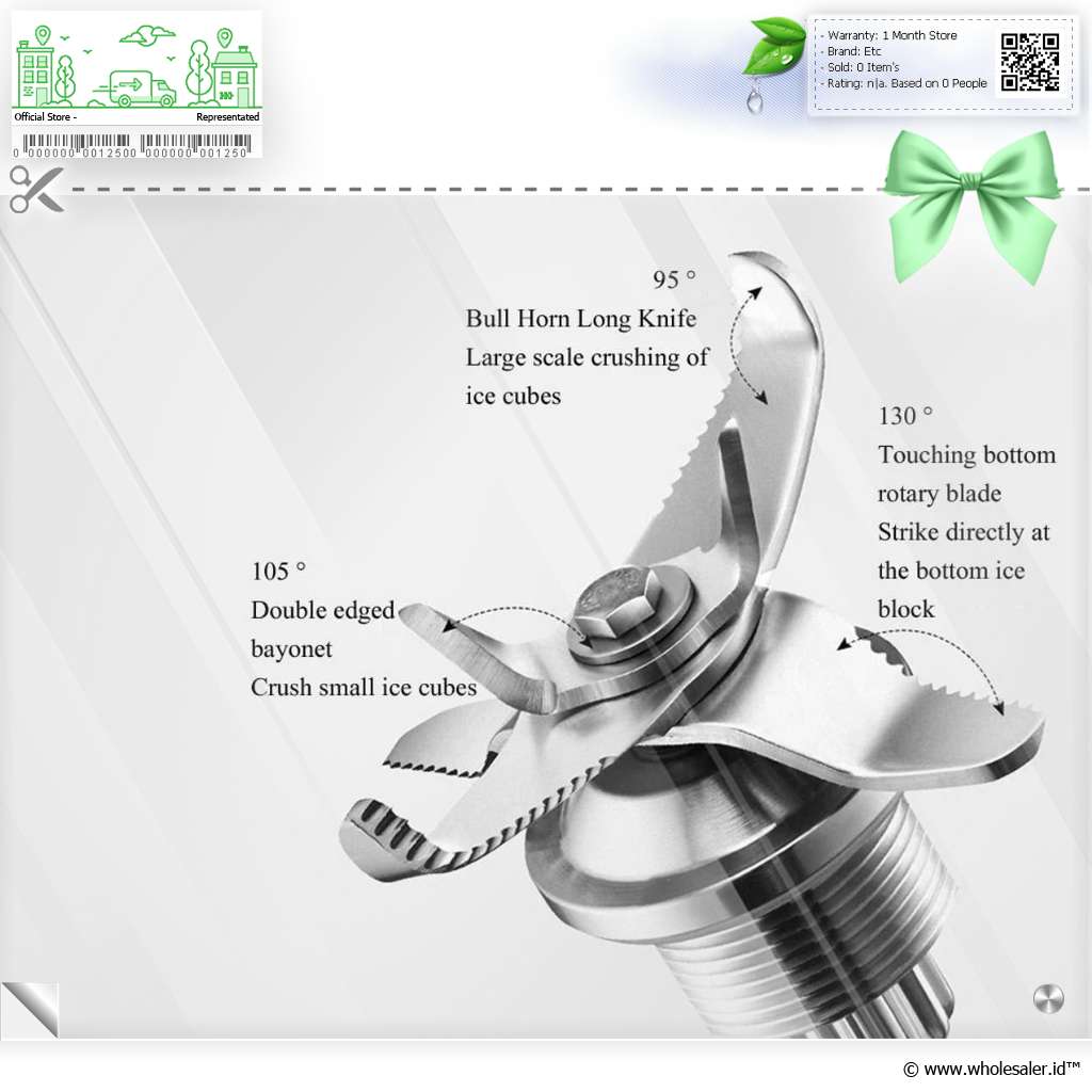 | Peforma Mata Pisau Maksimal Memiliki 5 bilah mata pisau di mana setiap mata pisaunya memiliki fungsi masing-masing untuk proses blender lebih maksimal dan halus. Hadir dengan sudut bilah 95, 105, dan 130 untuk menghancurkan es dalam skala besar, memecah bongkahan kecil, hingga mendorong es di bagian dasar ke atas untuk dihancurkan, proses penggilingan menjadi lebih cepat, halus, dan tanpa area yang terlewat. |