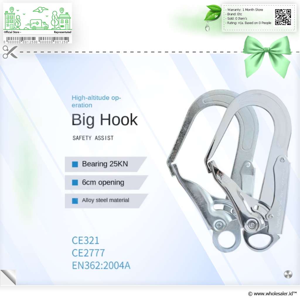 Kait besar Zhibo ini merupakan solusi andal untuk kebutuhan pengait beban berat dengan desain profesional dan konstruksi yang sangat kuat. Didesain dengan kepala sapi (bull head type hook) yang ergonomis dan finishing galvanized, kait ini mampu memberikan perlindungan tinggi terhadap karat dan korosi, sekaligus menjaga kekuatan tarik yang stabil bahkan dalam kondisi ekstrem. Cocok untuk kursi ayun gantung, hammock, alat keamanan kerja di ketinggian, climbing, maupun penggunaan industri.