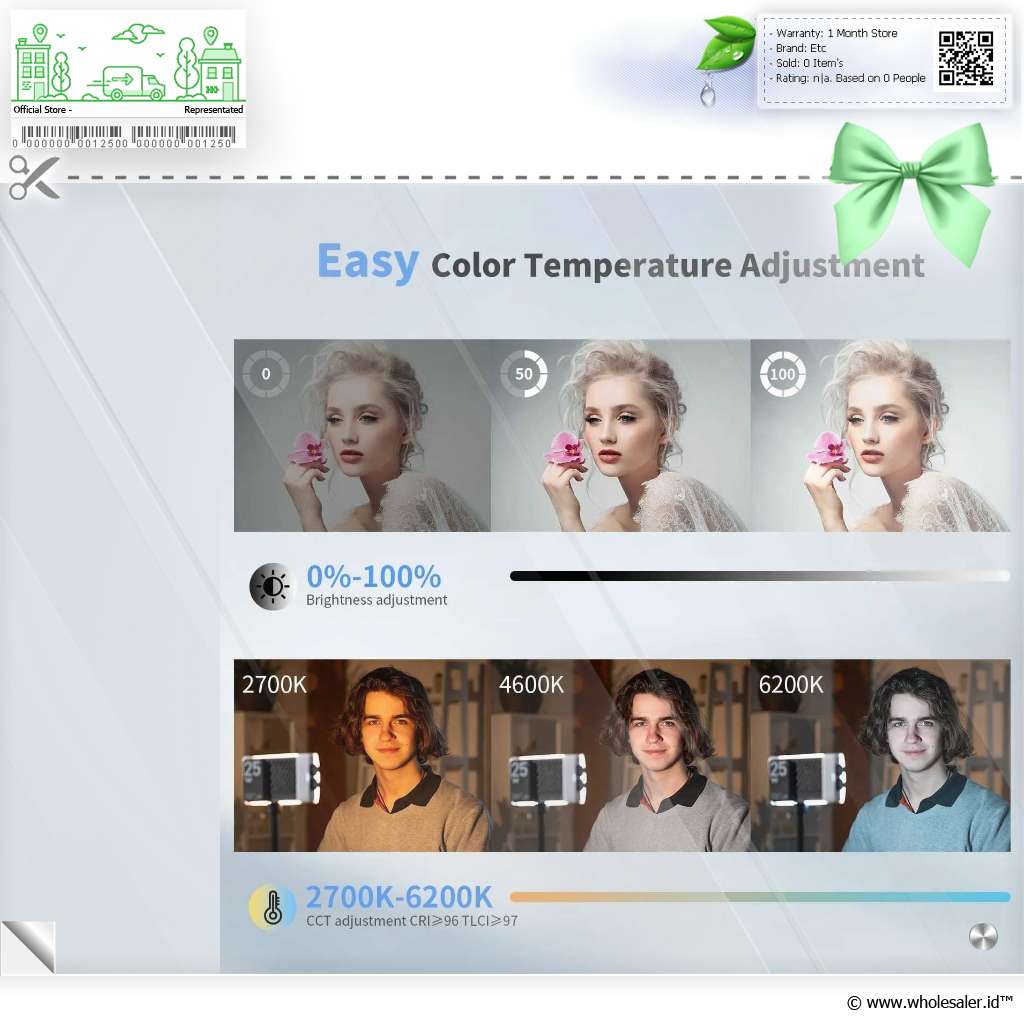 | Reproduksi Warna Akurat Dengan tingkat CRI 96, lampu fill light mampu menghasilkan cahaya yang natural dan akurat, menjaga detail serta warna objek agar terlihat nyata di kamera. Gambar dan video yang dihasilkan pun natural, tajam, dan mendekati aslinya. |