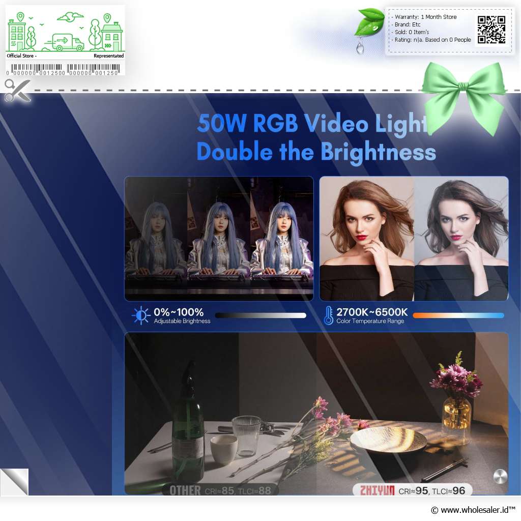 | Output Stabil 50 W Lampu ini menawarkan output 50 W full power yang stabil sehingga cocok untuk berbagai kegiatan seperti portrait, live streaming, konten dan kebutuhan media sosial lainnya. |