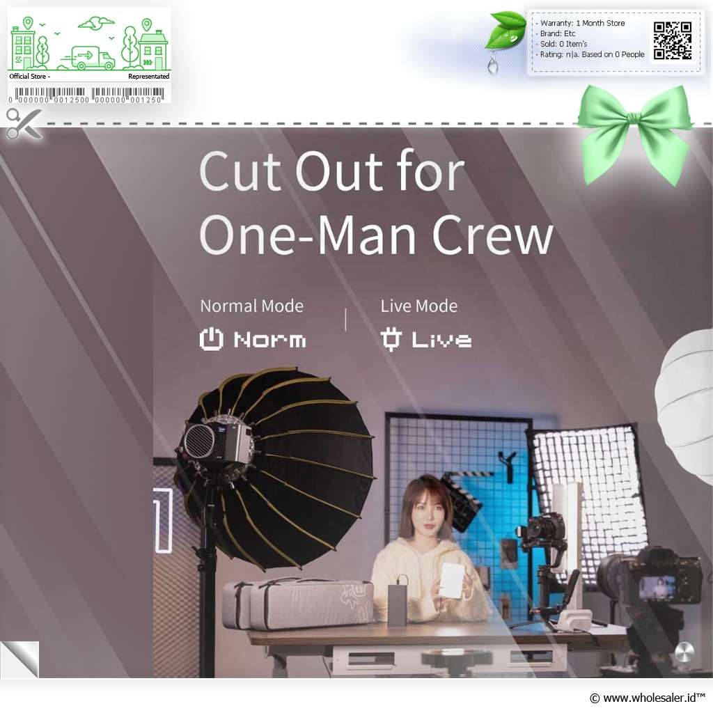 Lampu studio Zhiyun hadir dengan suhu warna 2700-6500K, CRI 95 untuk warna natural, serta peredupan bertahap 1-100%. Kontrol mudah via tombol putar, layar digital, atau aplikasi. Dilengkapi mode musik, sistem pendingin DynaVort, tiga opsi sumber daya, dan Bowens mount untuk aksesori fleksibel.