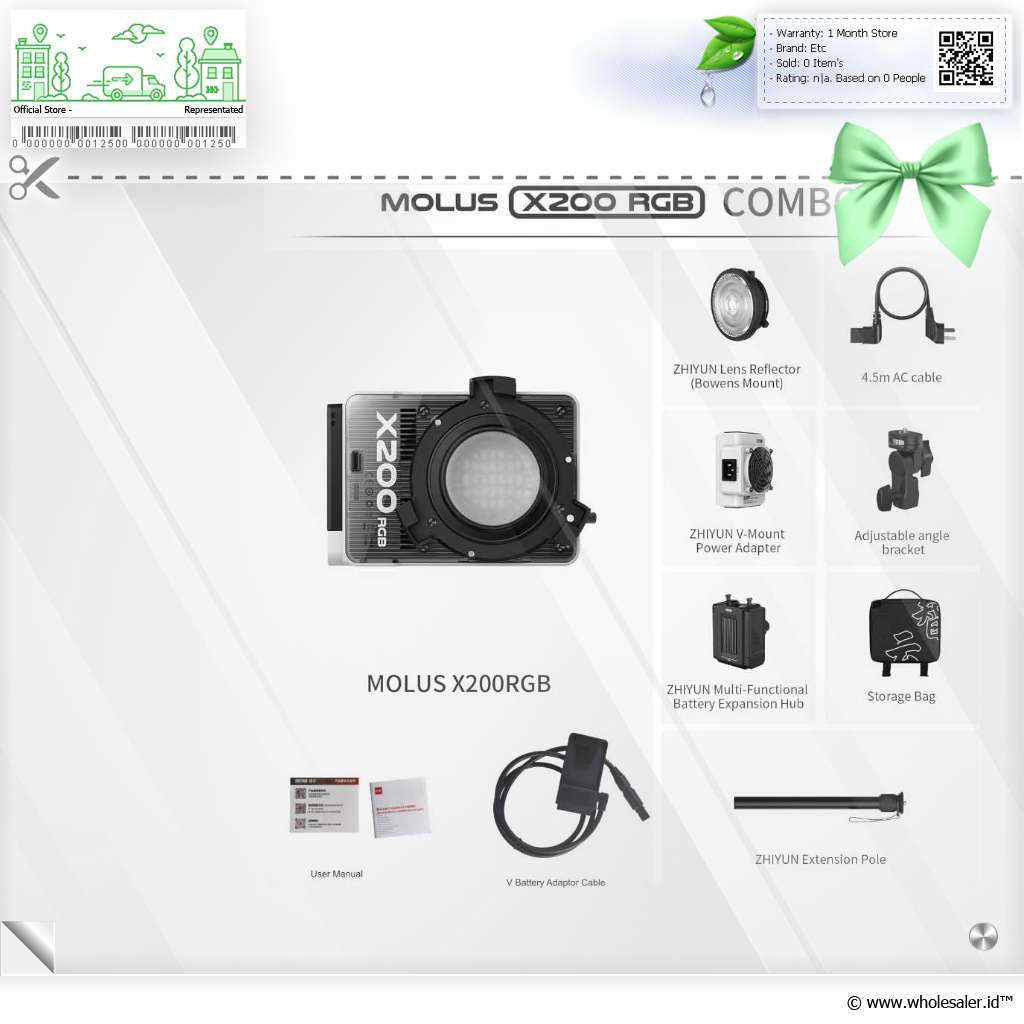 - 1 x Zhiyun Lampu Studio Fotografi LED RGBW 15 Mode Bowens Mount 200W - X200