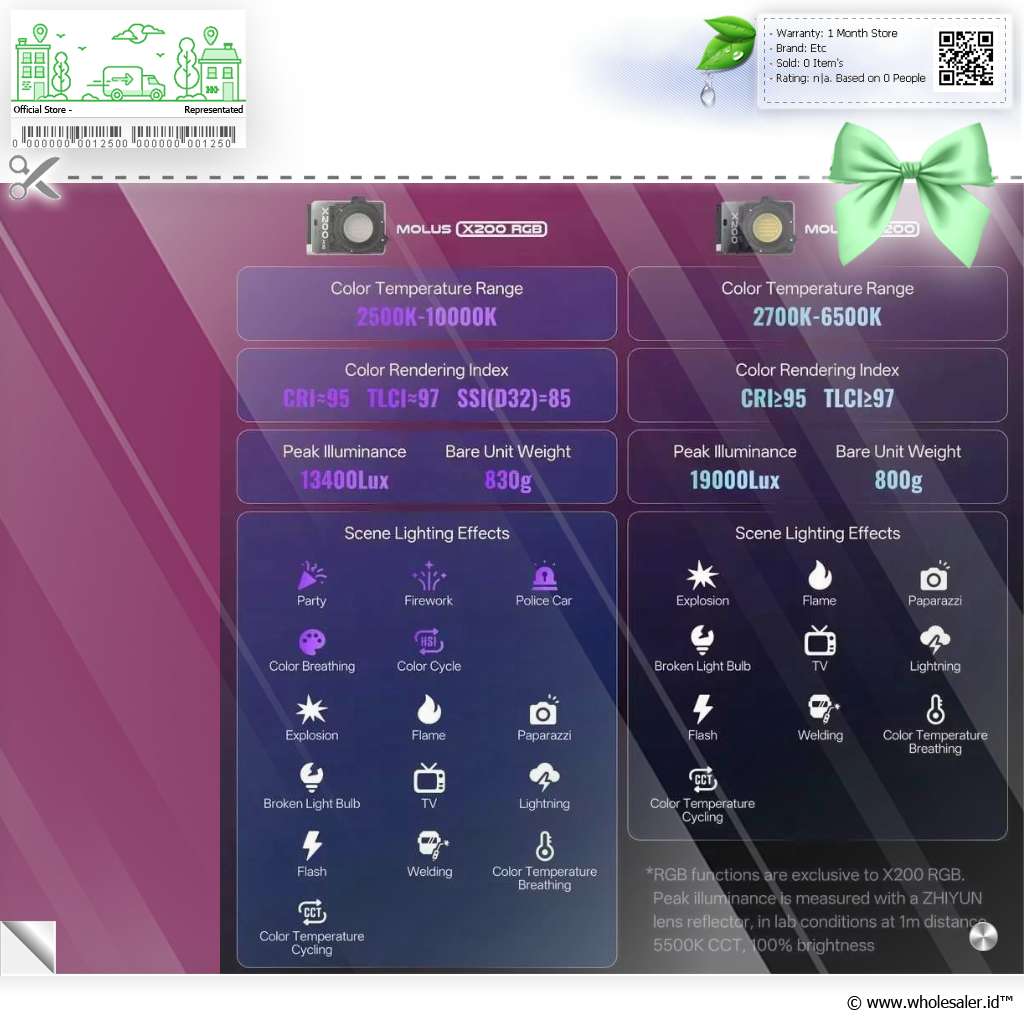 Informasi Produk Zhiyun Lampu Studio Fotografi LED RGBW 15 Mode Bowens Mount 200W - X200