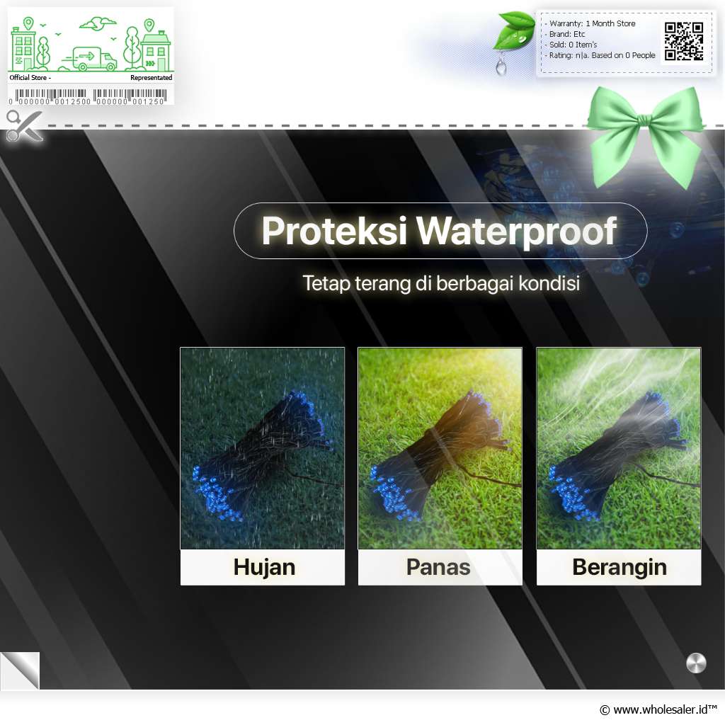 | Proteksi Waterproof Proteksi waterproof yang digunakan membuat lampu hias tahan air dan debu. Gunakan untuk menerangi rumah di berbagai cuaca, mulai dari hujan hingga panas tanpa masalah. |
