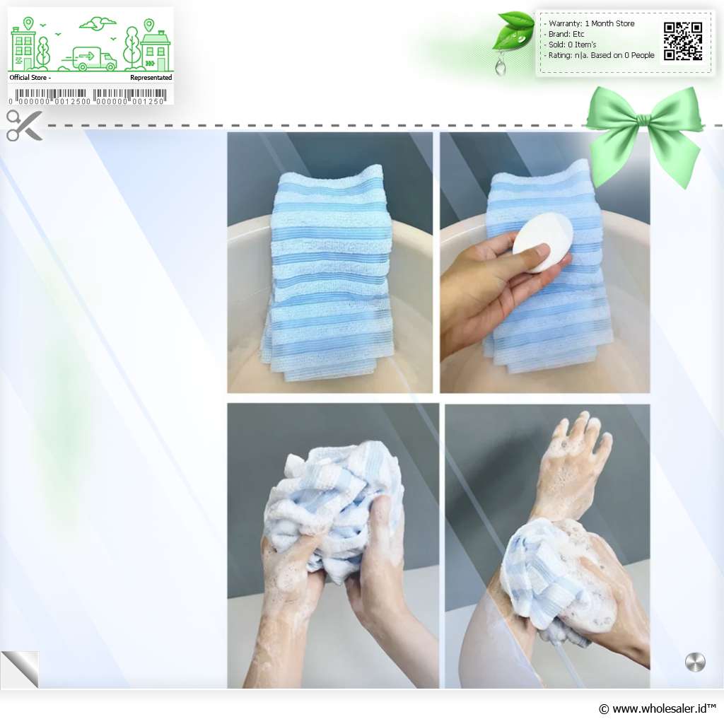 | Mudah Digunakan dan Dibersihkan Cukup rendam dalam air hangat selama 1 - 2 menit, tambahkan sabun mandi, gosok hingga berbusa, lalu gunakan pada tubuh. Setelah digunakan, bilas dan gantung agar cepat kering. Dapat dicuci menggunakan mesin cuci dan pengering, menjadikannya pilihan praktis untuk penggunaan harian maupun saat bepergian. |